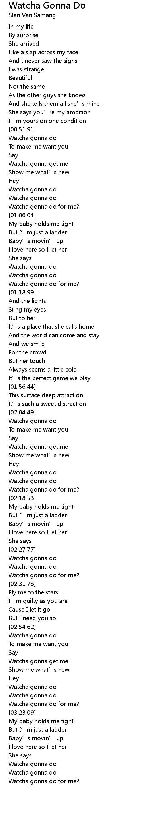 | [03:36.45] | Watcha gonna do for me? |