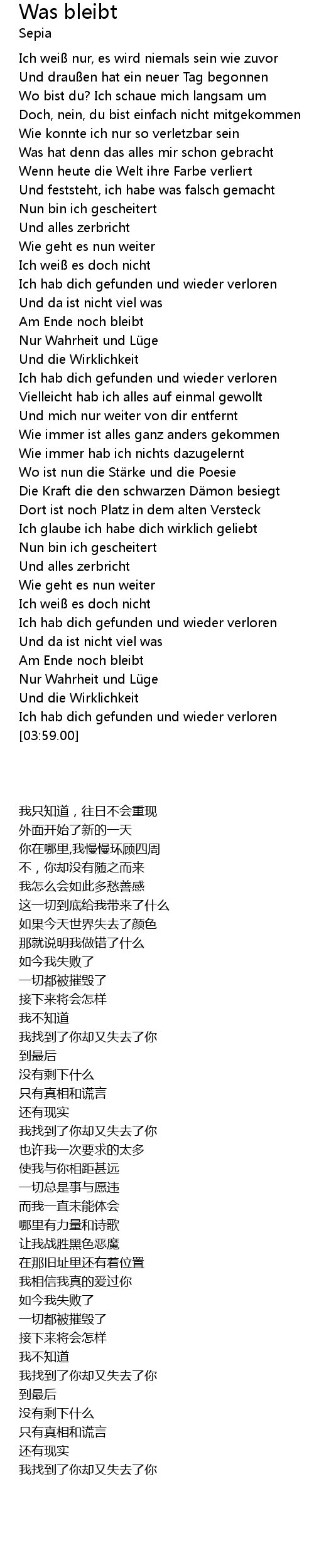 | [03:46.18] | Ich hab dich gefunden und wieder verloren |
