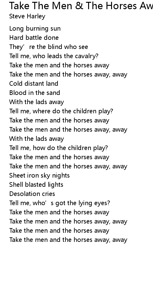 | Song | Take The Men & The Horses Away |