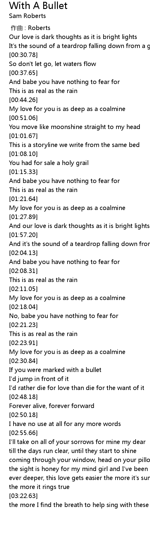 | [00:45.88] | My love for you is as deep as a coalmine |
