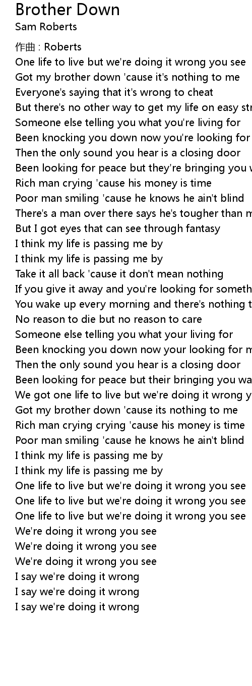 | Got my brother down 'cause it's nothing to me | |