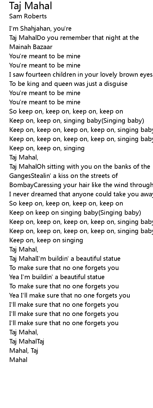 Taj MahalOh sitting with you on the banks of the |