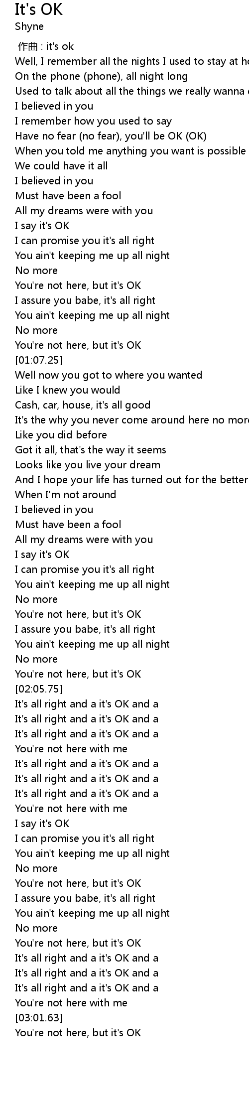 | [02:10.88] | It' s all right and a it' s OK and a |