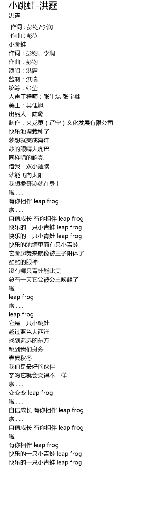 | [02:13.41] | kuai le de yi zhi xiao qing wa leap frog |