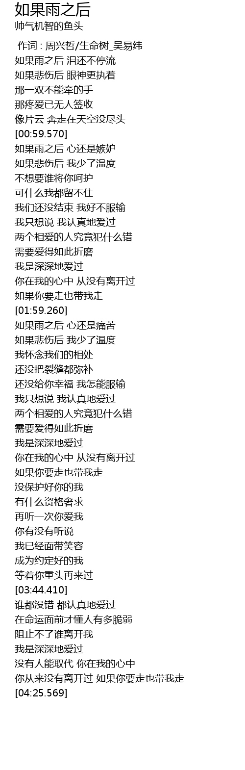 | [00:34.250] | 如果雨之后 泪还不停流 |