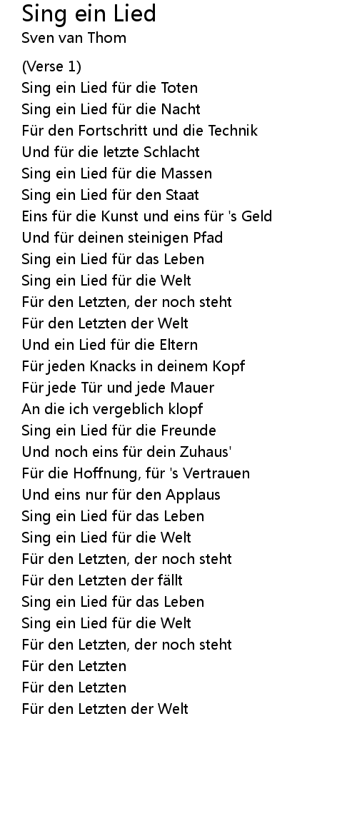 | Song | Sing ein Lied |