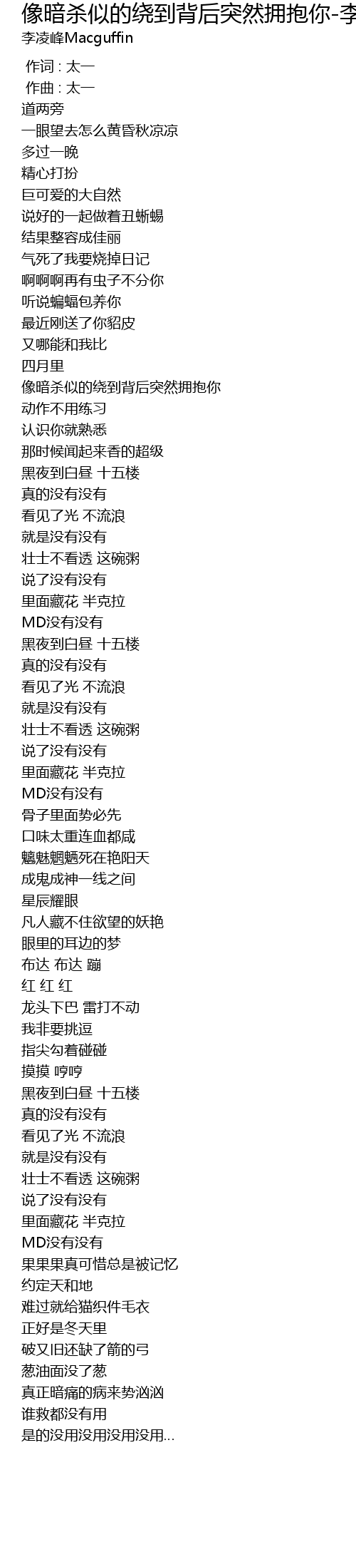 | Song | 像暗杀似的绕到背后突然拥抱你-李凌峰 |