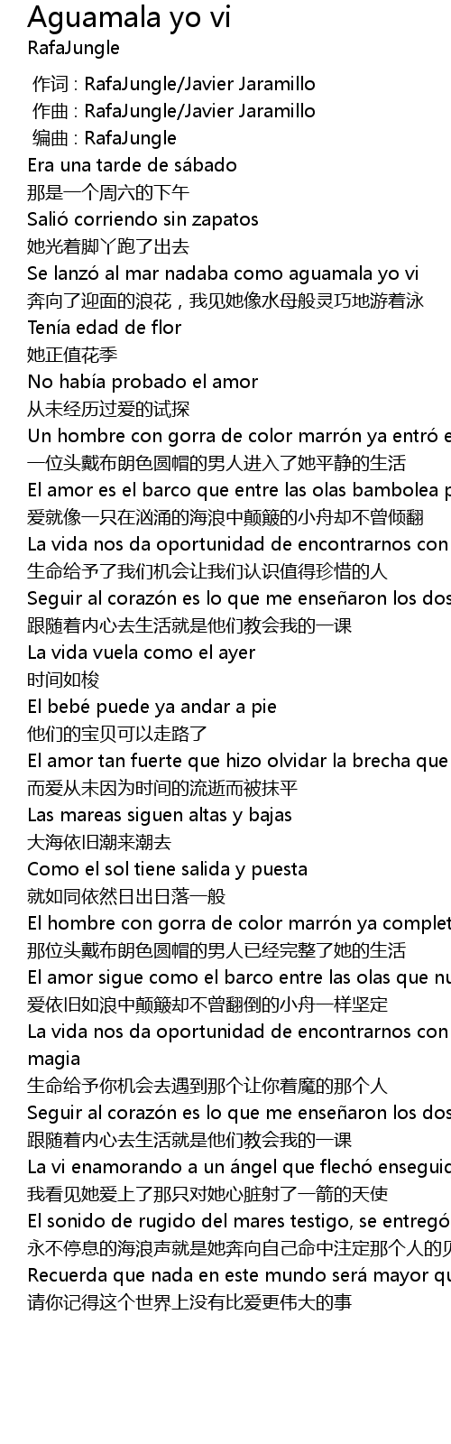 | [00:00.000] | 作词 : RafaJungle/Javier Jaramillo |