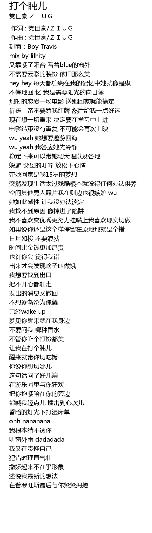 | [00:00.000] | 作词 : 党世豪/ZIUG |