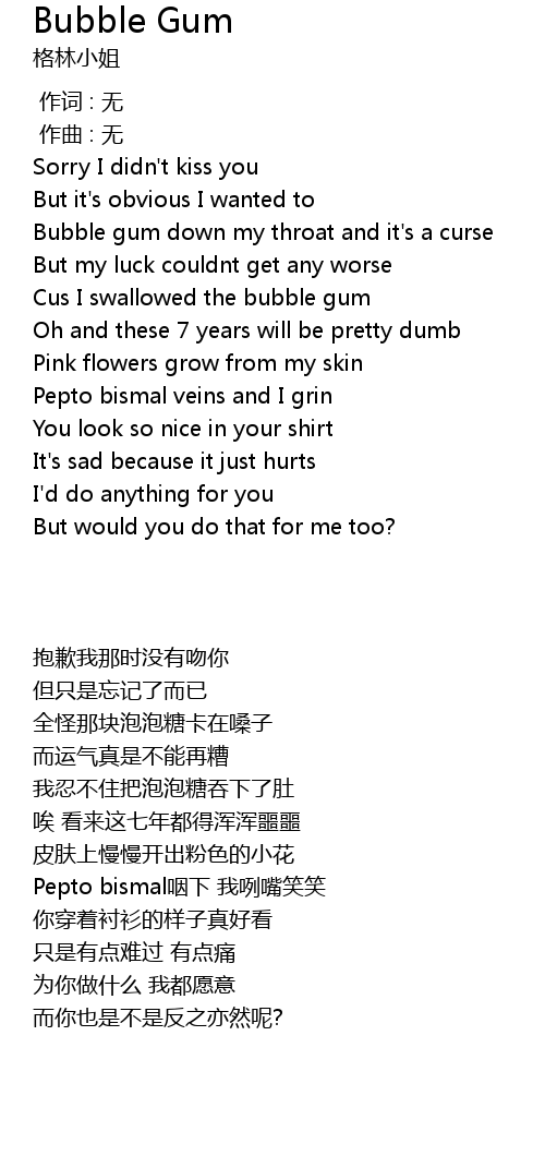 | [00:42.118] | Cus I swallowed the bubble gum |