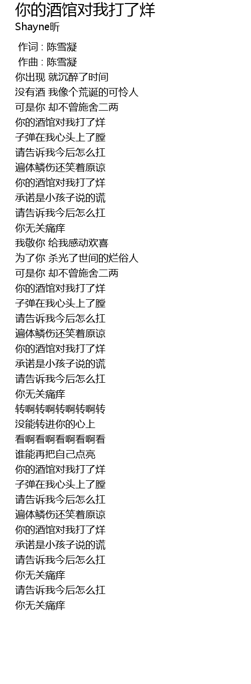 | [02:19.179] | 你的酒馆对我打了烊 |