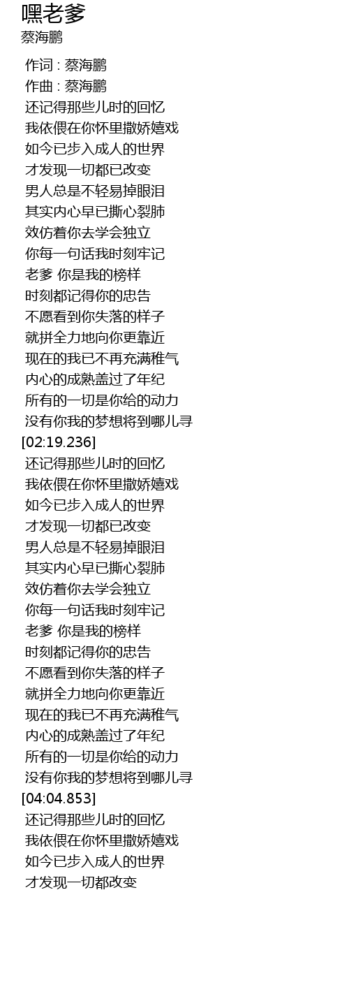 | [00:01.000] | 作曲 : 蔡海鹏 |