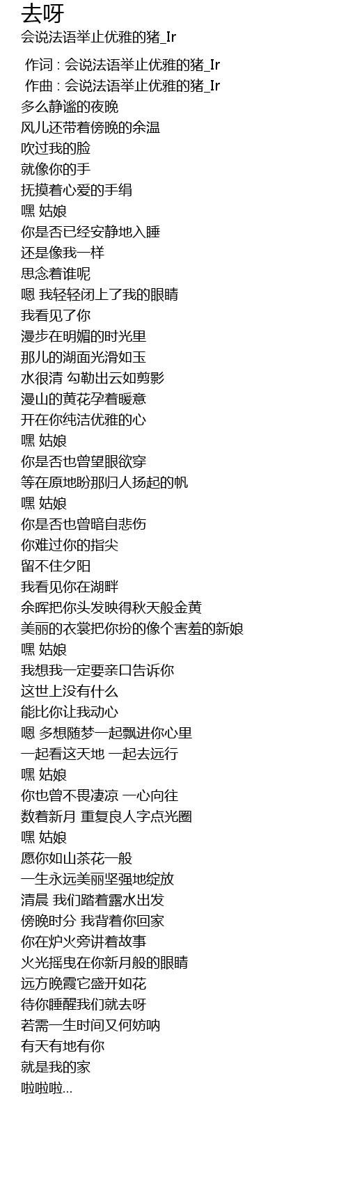 | [00:00.000] | 作词 : 会说法语举止优雅的猪_Ir |