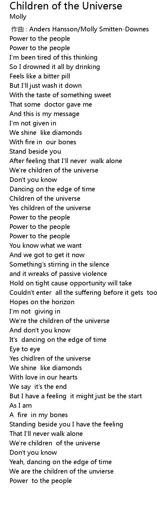 | [00:46.47] | We' re children of the universe |