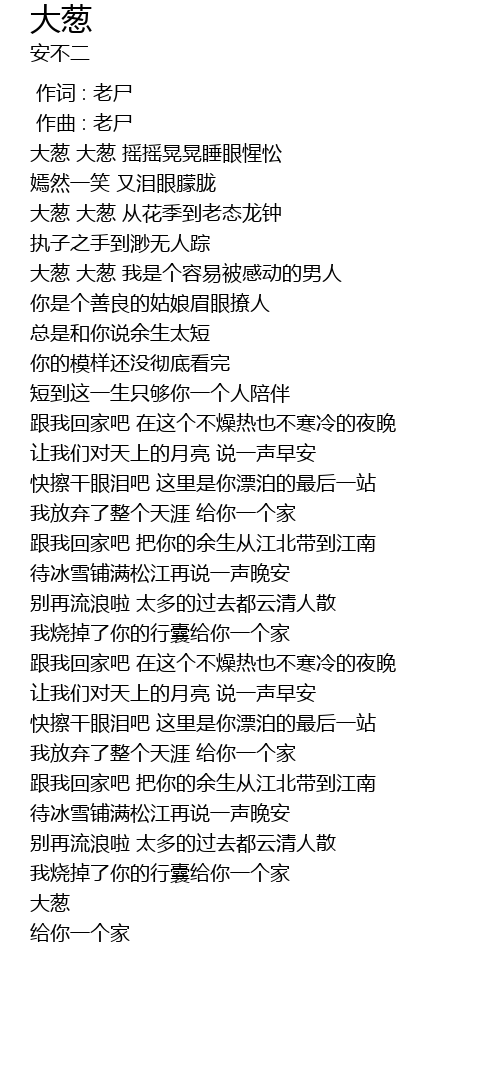 | [00:46.418] | 大葱 大葱 从花季到老态龙钟 |