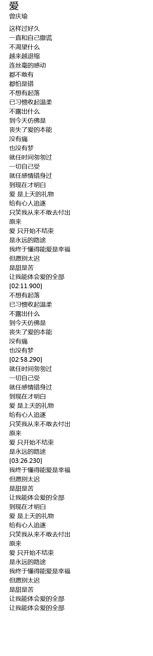| [03:27.170] | 我终于懂得能爱是幸福 |