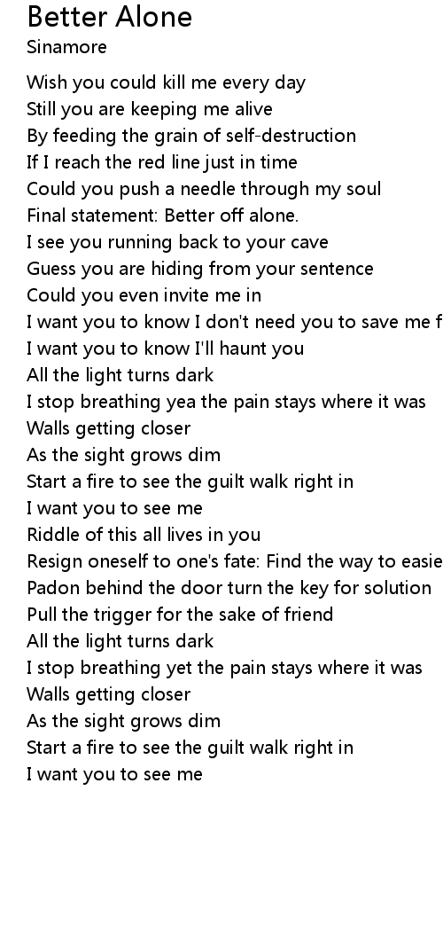 Final statement: Better off alone. |