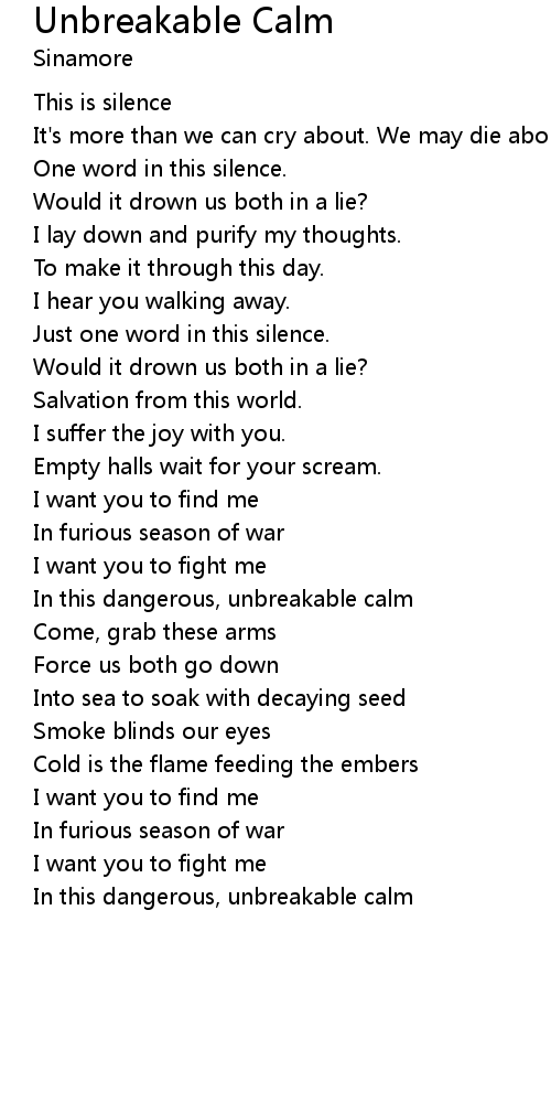 In this dangerous, unbreakable calm |