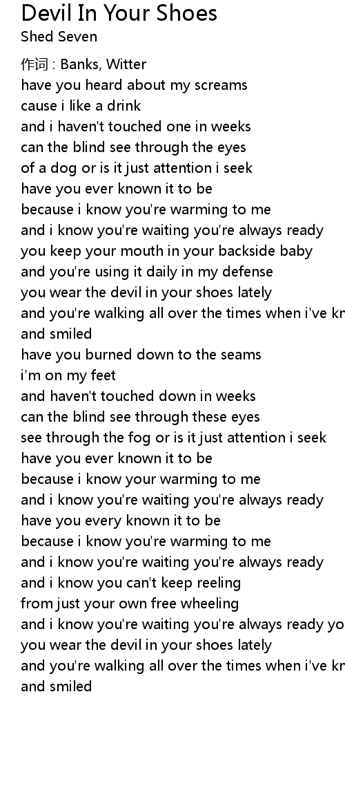 | you wear the devil in your shoes lately | |