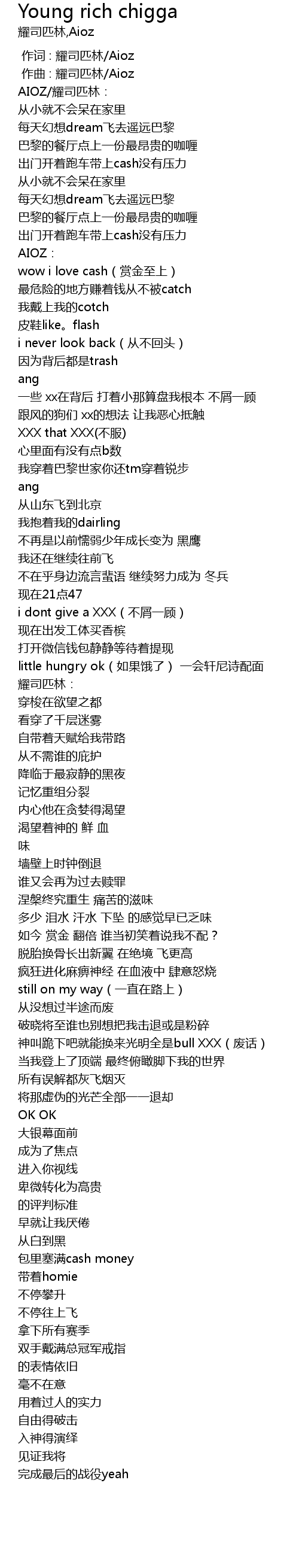 | [02:27.742] | bāo lǐ sāi mǎn cash money |