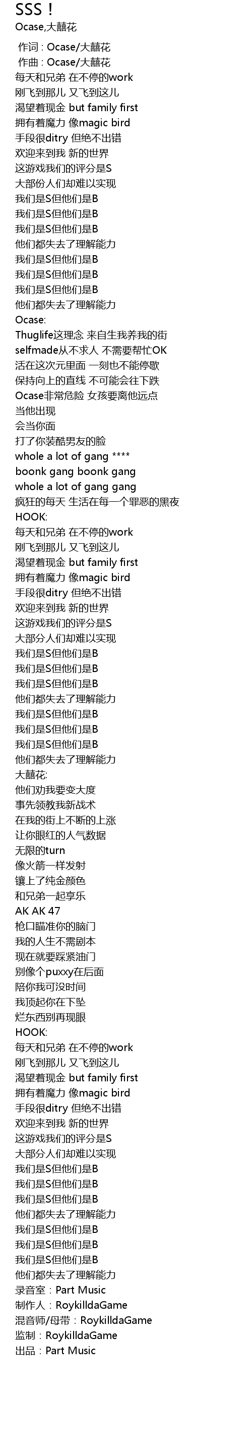 | [00:00.000] | 作词 : Ocase/大囍花 |