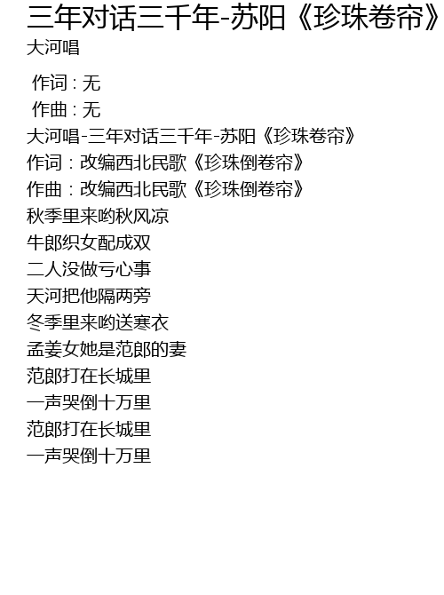 | [00:00.546] | 大河唱-三年对话三千年-苏阳《珍珠卷帘》 |