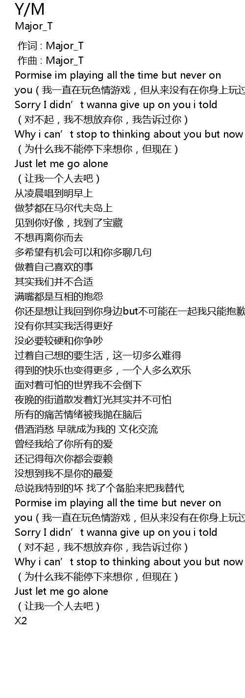 | [00:00.000] | 作词 : Major_T |