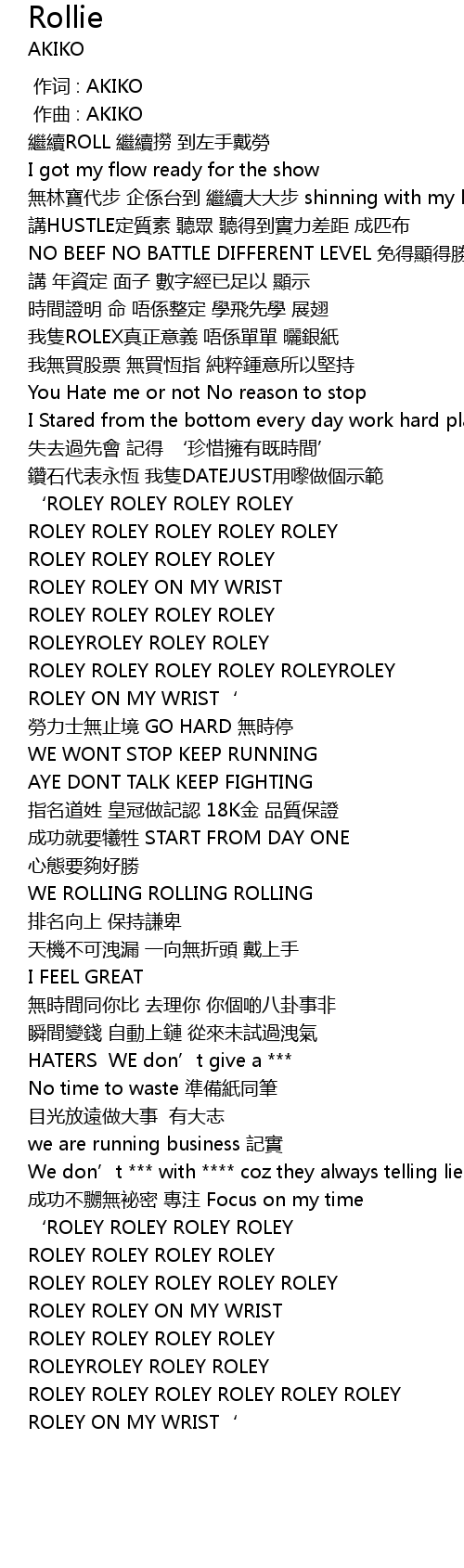 | [01:33.845] | ROLEY ON MY WRIST‘ |
