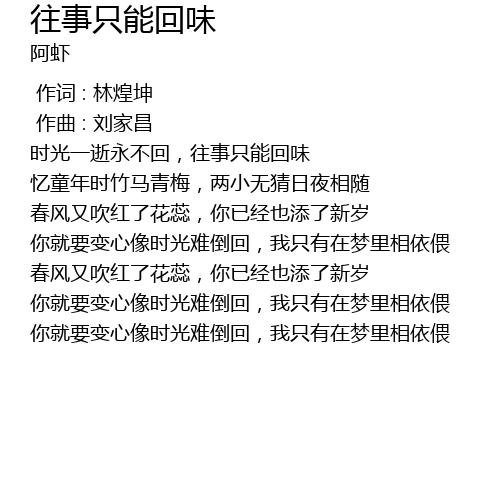 | [00:15.693] | 时光一逝永不回,往事只能回味 |