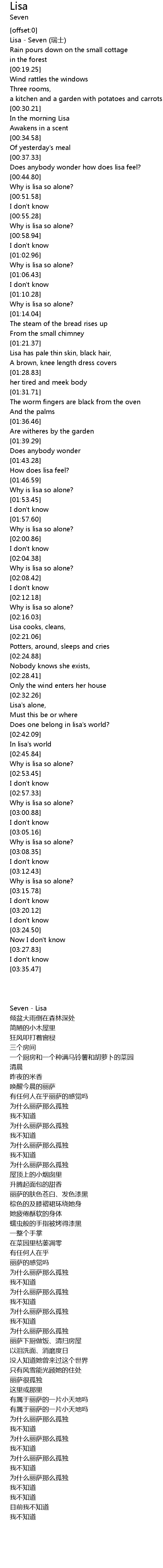 | [00:39.39] | Does anybody wonder how does lisa feel? |