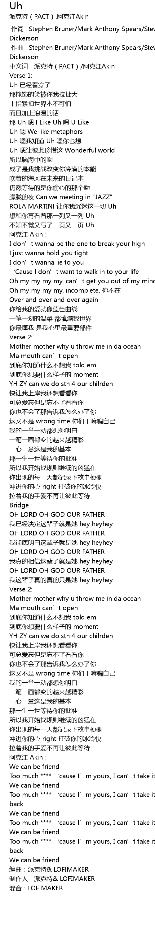 | [00:04.20] | 中文词:派克特(PACT)/阿克江Akin |