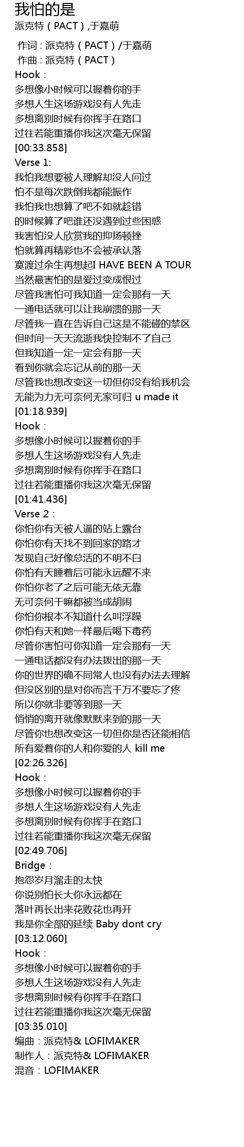 | [00:00.000] | 作词 : 派克特(PACT)/于嘉萌 |