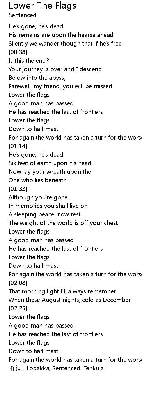 | [00:00.00] | 作词 : Lopakka, Sentenced, Tenkula |