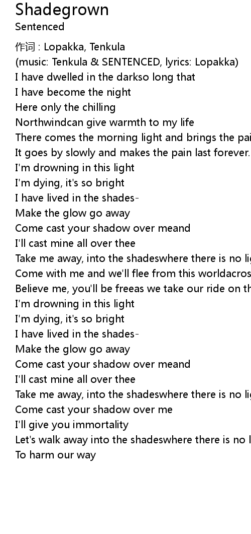 | music: Tenkula SENTENCED, lyrics: Lopakka | |
