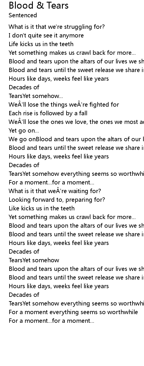 | Blood and tears until the sweet release we share in death | |