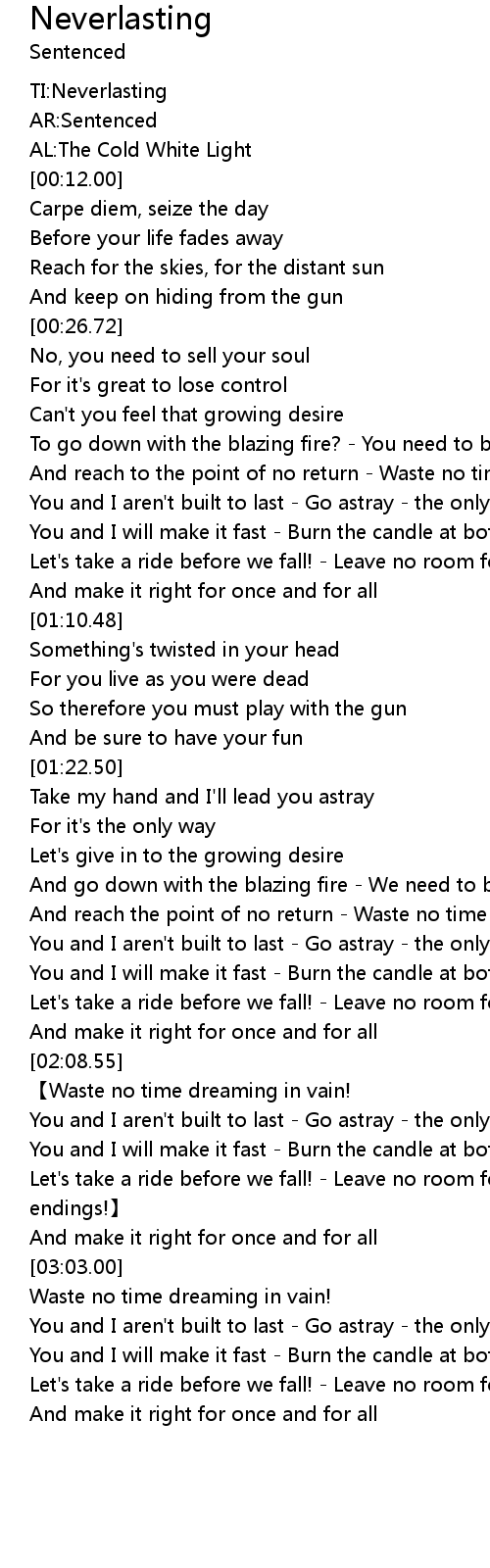 | [00:00.00] | TI:Neverlasting |