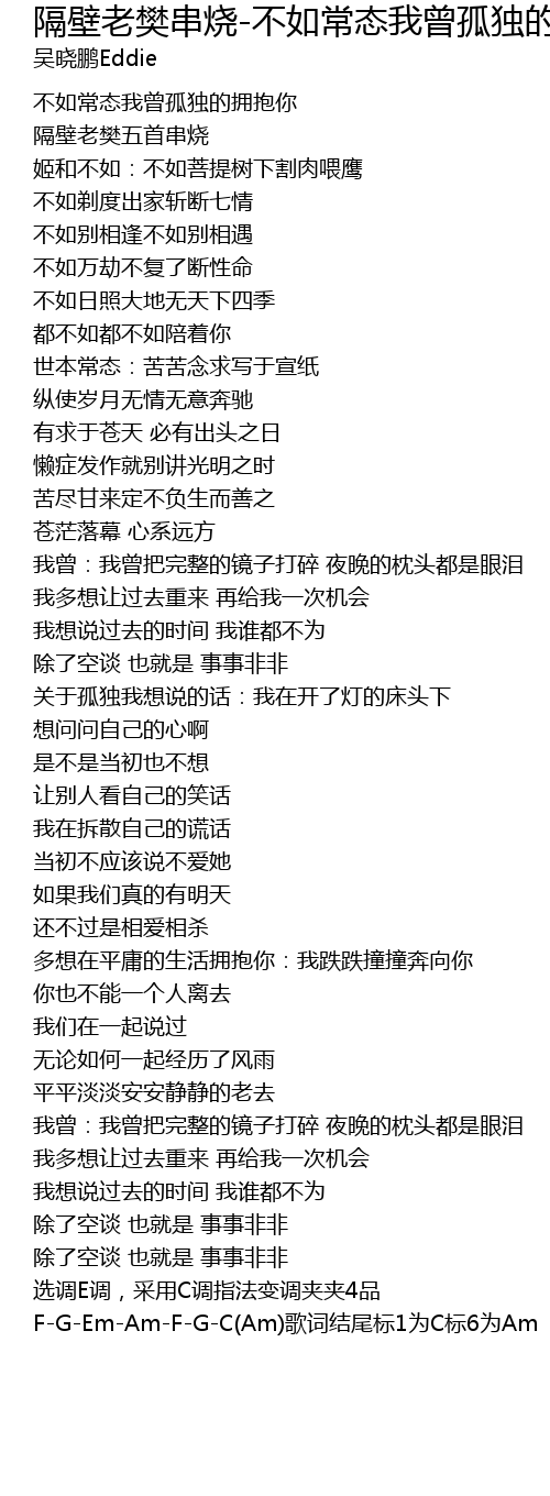 | [03:22.38] | 选调E调,采用C调指法变调夹夹4品 |