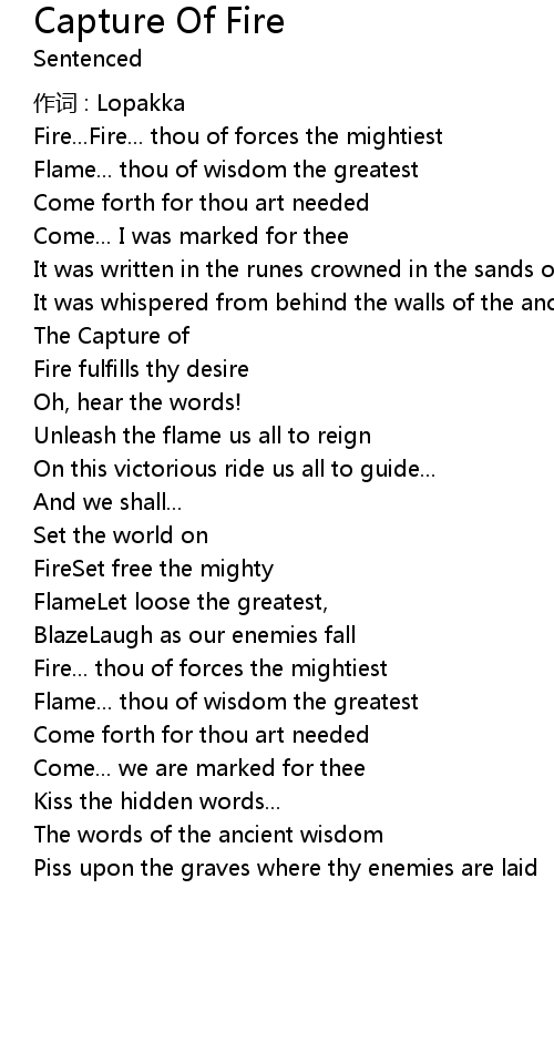 | Song | Capture Of Fire |