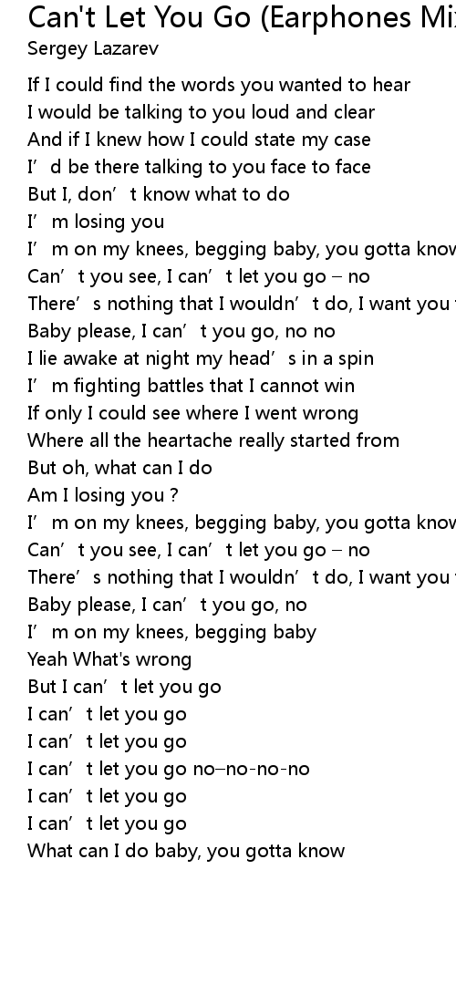| [00:41.24] | Baby please, I can' t you go, no no |