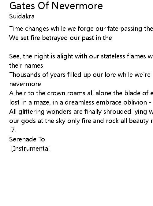 Thousands of years filled up our lore while we`re marching through the gates of nevermore |