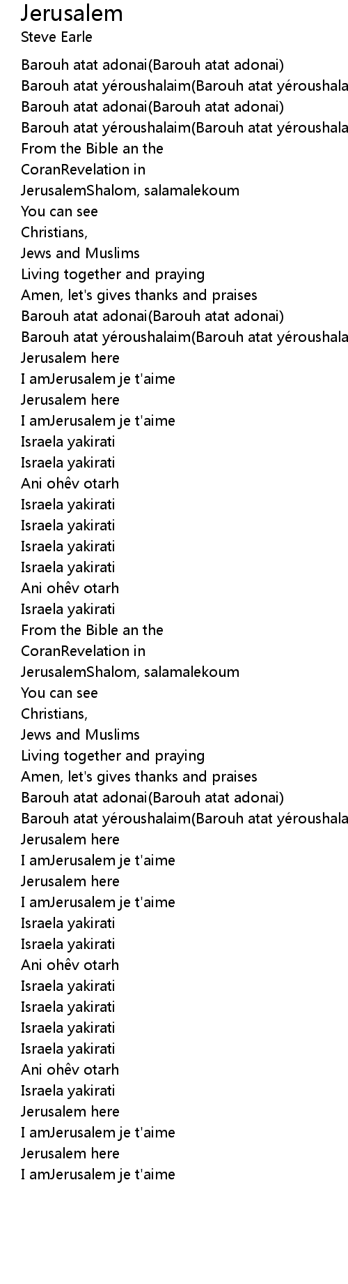 | I amJerusalem je t' aime | |