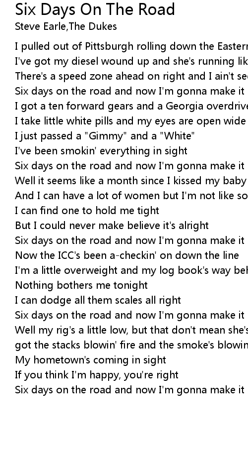 Six days on the road and now I'm gonna make it home tonight |