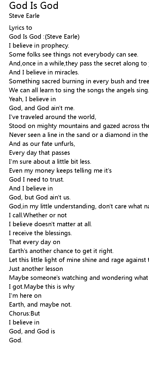 God Is God :(Steve Earle) |