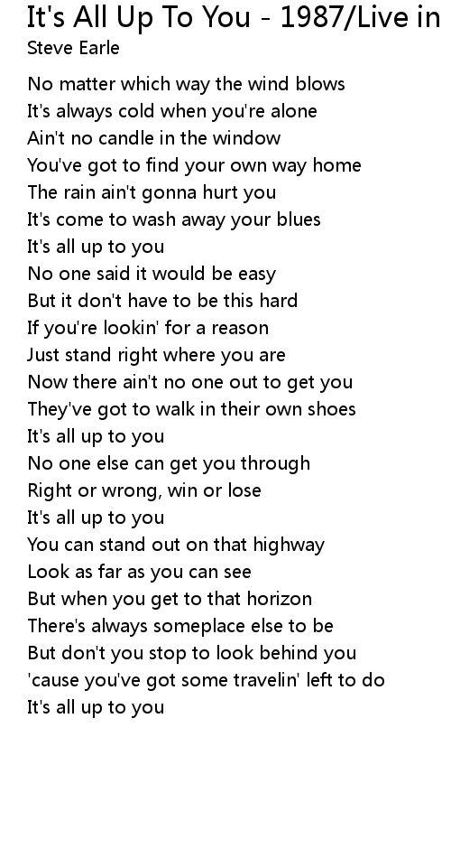 It's All Up To You - 1987/Live in Raleigh, NC Lyrics