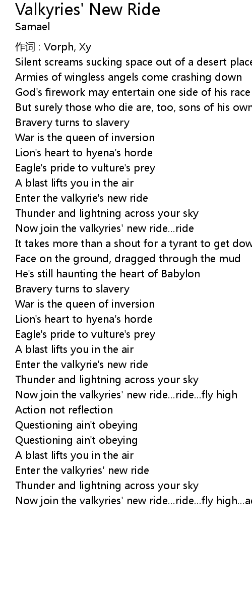 | Now join the valkyries' new ride... ride... fly high | |
