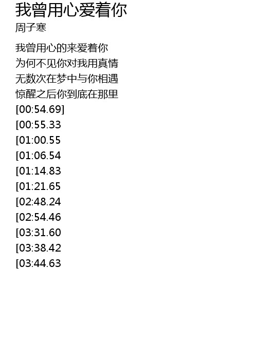 | [00:27.61] | wo ceng yong xin de lai ai zhe ni |