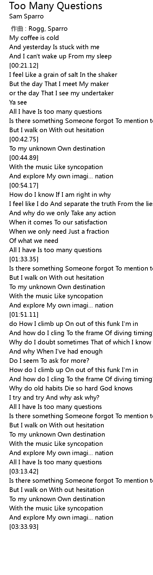 | [02:50.04] | All I have Is too many questions |