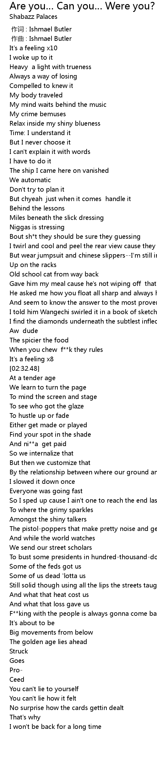| [00:00.000] | zuo ci : Ishmael Butler |