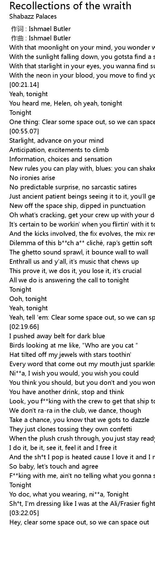 | [00:00.000] | zuo ci : Ishmael Butler |