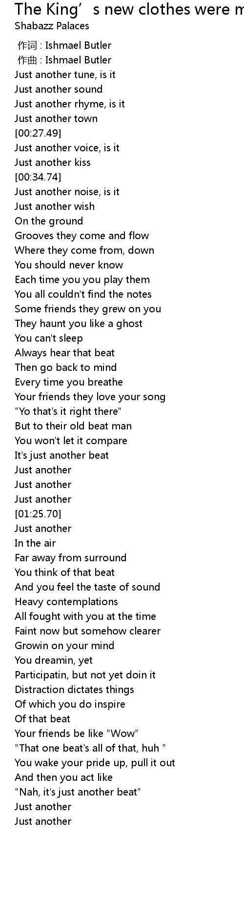 | [00:00.000] | zuo ci : Ishmael Butler |